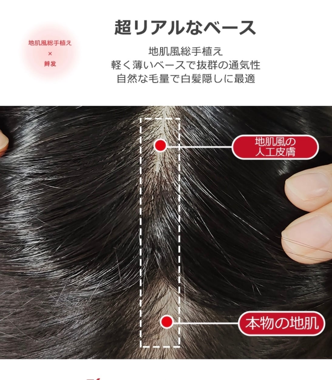 驚くほど手触りが良い髪質と、頭のフォルムに合わせやすい柔らかフィットシリーズのベースで製作されておりますので、自然に馴染ませやすい商品となっております。