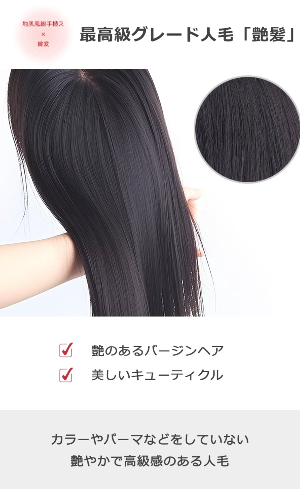 【髪質】最高級グレード人毛(パーマなどの施術をしたことのないバージンヘア)