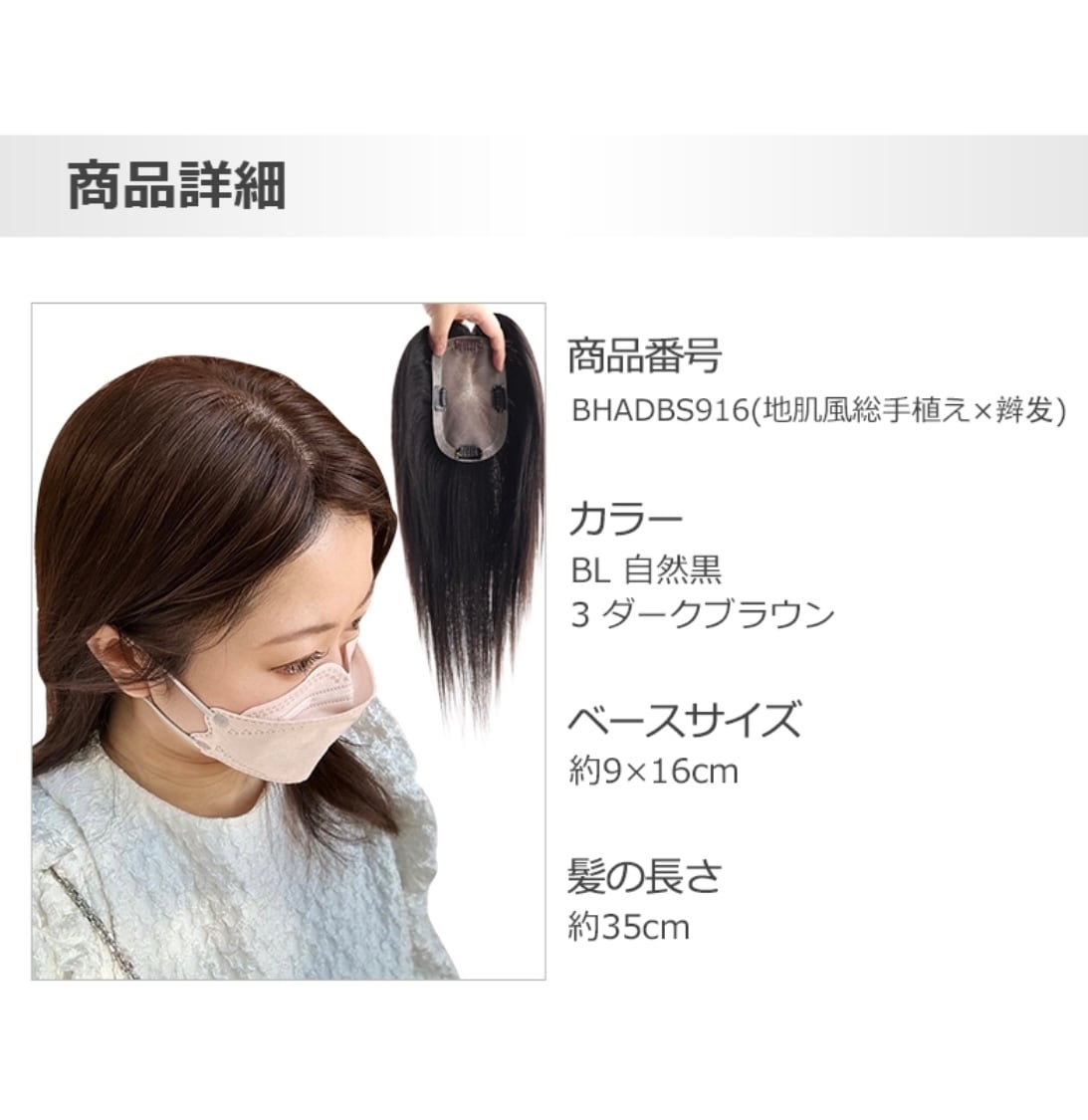 毛量は多くない毛量加減ですが、ベースが9×16cmと大きい分カバー力はちゃんとあります◎