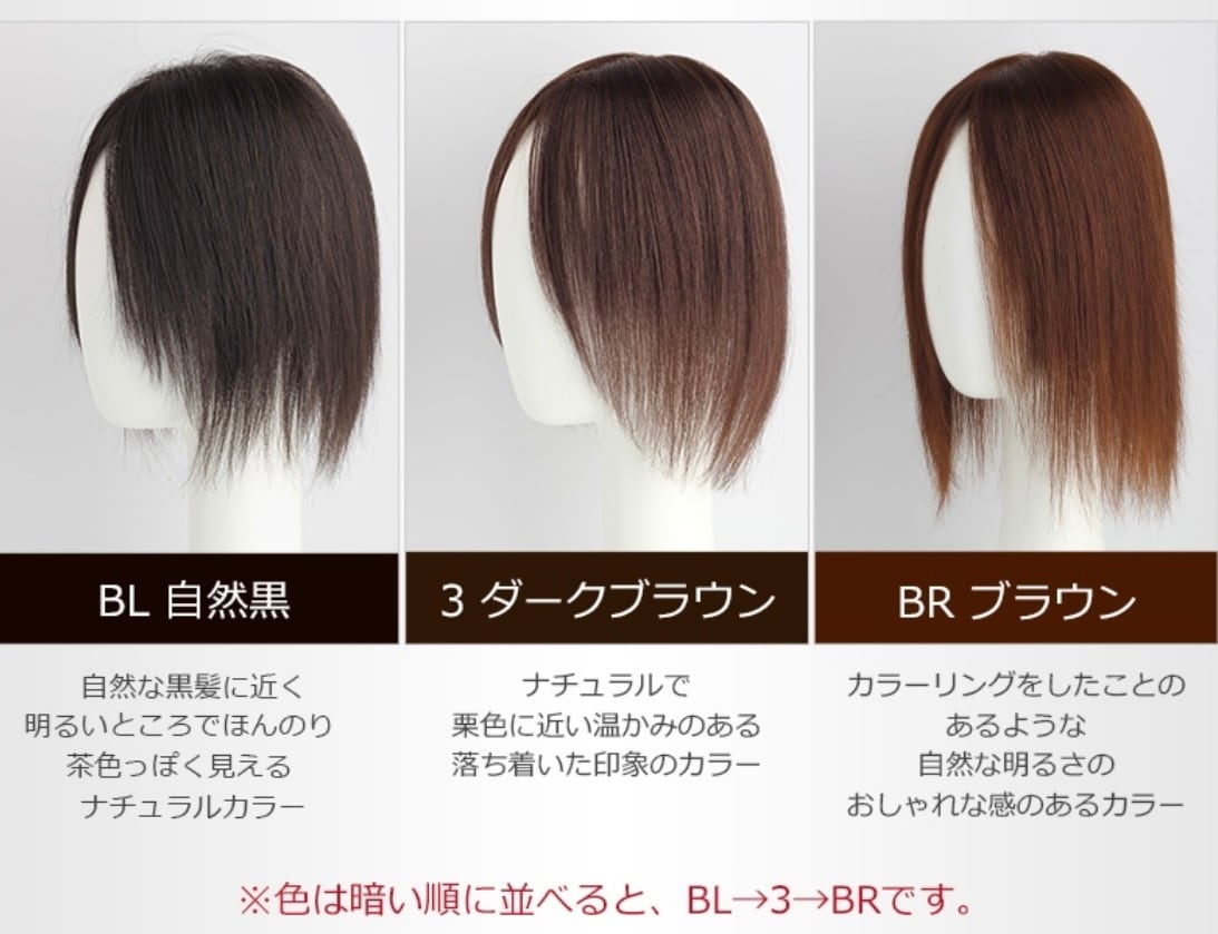 またセルフカラーのカラーリングは、カラー剤や染め方によってウィッグの髪が抜けてしまう危険がございますため、美容院でのカラーをおすすめしております。