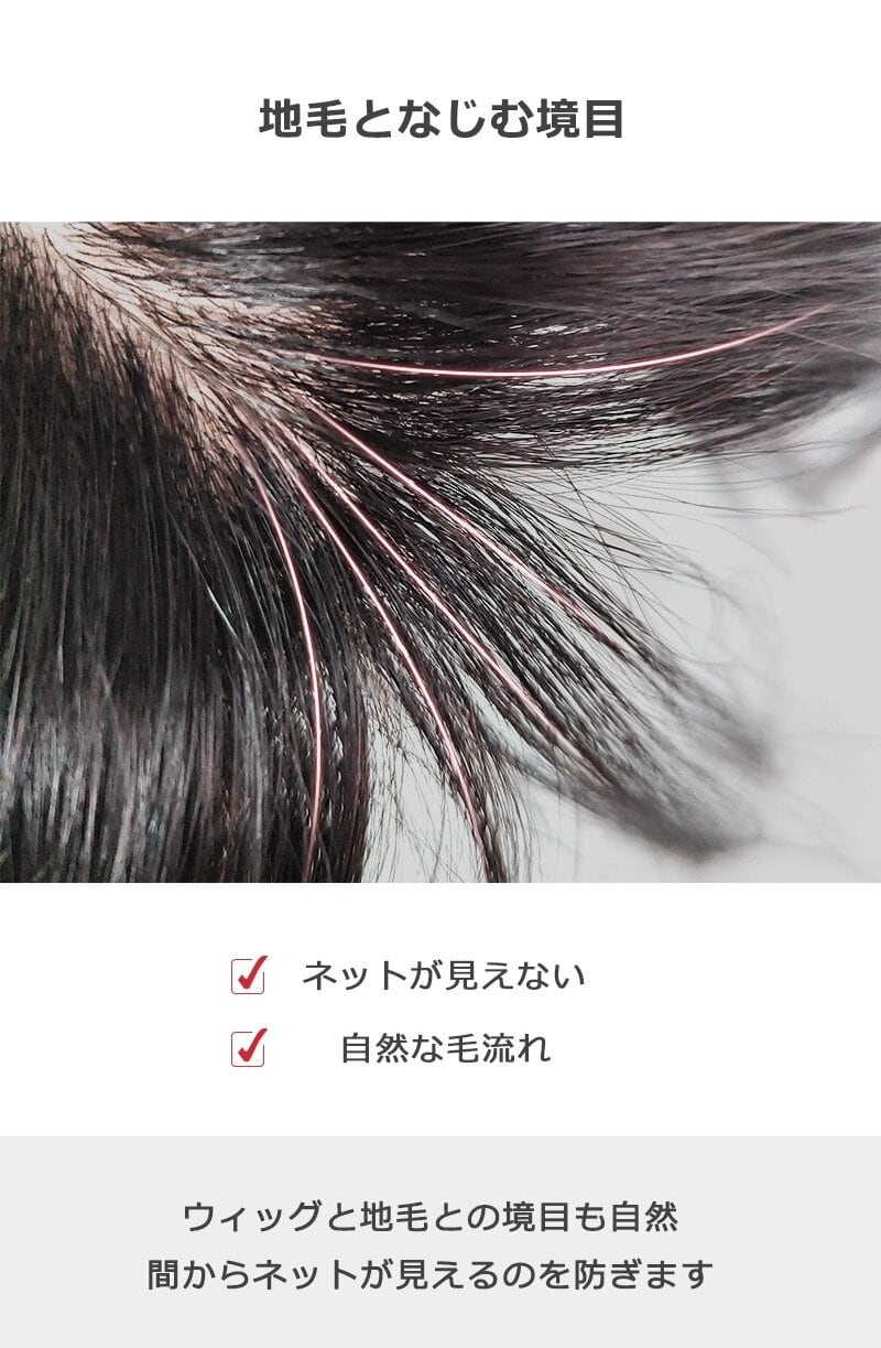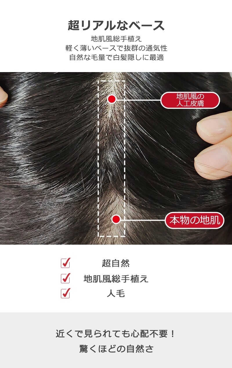 製法:毛の結び目が表に出ない地肌風総手植え