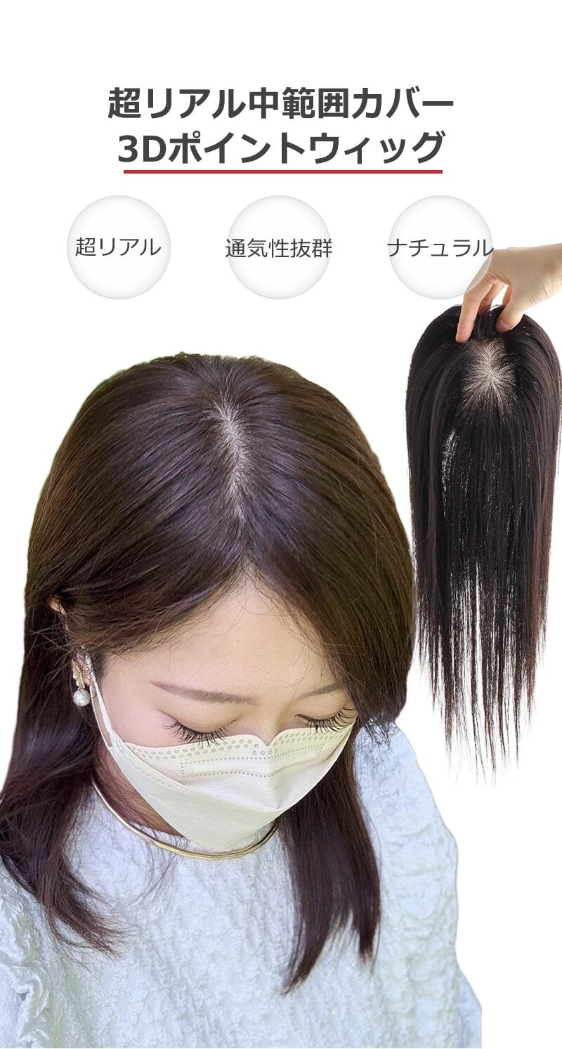 ふんわり自然にトップをカバーする立体的な3D部分ウィッグです。