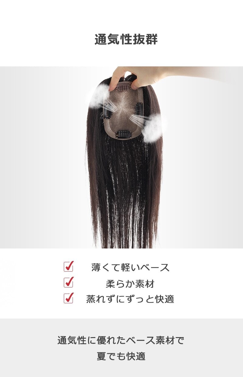 通気性抜群で地毛のようにドライヤーやコテをつかってヘアアレンジも可能です。
